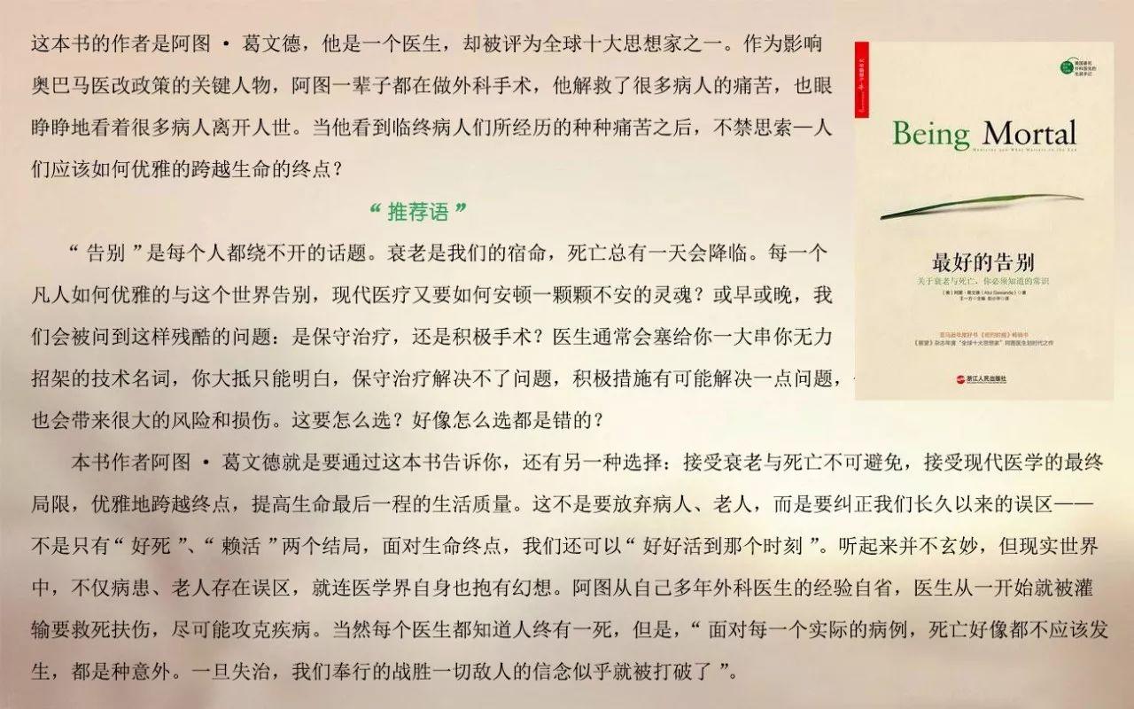 《好的告別》被稱為每個人在50歲前必讀的書,獲譽無數(shù) ,也被奧巴馬選入了2014年感恩節(jié)的購書書單。