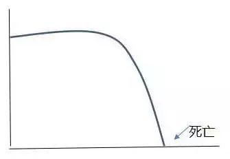 每年在美國有百分之六十的老人因為摔跤而離世。為什么老人的腳會出問題?人老了以后,無法彎腰夠到腳。不洗腳,代表著真正的疏忽和危險。很多老年人上身穿得整齊講究,但脫下鞋,你會發(fā)現(xiàn)他的腳很長時間都沒有洗過,生了腳疾。當(dāng)腳疾被忽略時,如果老人摔一跤的話就很有可能引致死亡。如果把人的健康狀況畫成一條曲線,那么其曲線看起來如圖:
