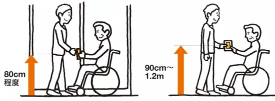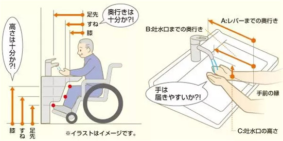 若為高齡人士(腿腳不便需輪椅老人),操作臺根據(jù)使用者腿部情況高度+18cm=約73~85厘米左右。