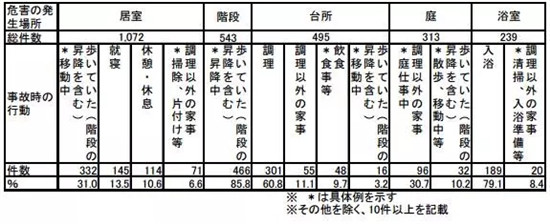 以下是危害發(fā)生場所統(tǒng)計表,根據(jù)一定時間內(nèi)日本老齡人事故發(fā)生原因搜集。