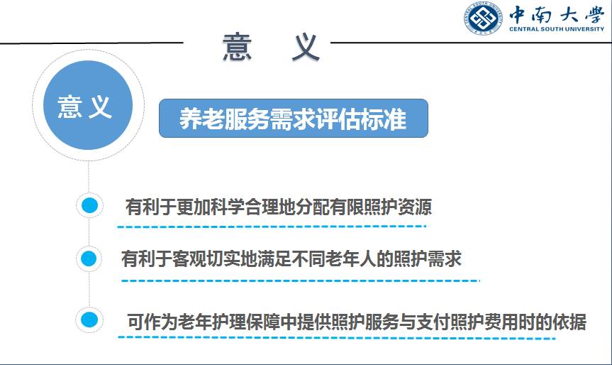 尊敬的各位領(lǐng)導(dǎo)、各位專家,大家(上午)好,我是來自中南大學(xué)湘雅護(hù)理學(xué)院的馮輝,很高興有機(jī)會(huì)參加這次專家沙龍,今天我向各位領(lǐng)導(dǎo)和專家匯報(bào)的內(nèi)容是:國內(nèi)外養(yǎng)老服務(wù)需求評(píng)估標(biāo)準(zhǔn)及應(yīng)用實(shí)踐介紹。