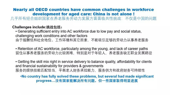 幾乎所有OECD國家在養(yǎng)老人才隊(duì)伍發(fā)展方面都面臨共同挑戰(zhàn),中國也一樣。