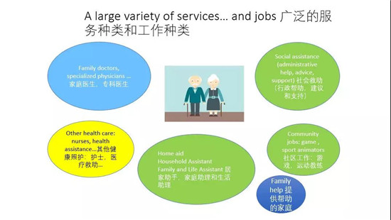 下面介紹法國案例。從法國來看,養(yǎng)老服務(wù)業(yè)的職業(yè)種類非常多,不單純就是護(hù)理崗位,因?yàn)轲B(yǎng)老照護(hù)涉及的面非常大,牽涉到的工作性質(zhì)和工作種類是非常復(fù)雜的。法國有一系列培訓(xùn)方面的安排,有一個(gè)專業(yè)化的訓(xùn)練,而且是把培訓(xùn)與就業(yè)直接聯(lián)系起來。
