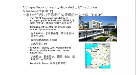 我們在討論培訓(xùn)政策或者整個(gè)護(hù)理員隊(duì)伍培養(yǎng)時(shí),要把它放到整個(gè)養(yǎng)老體系中去考慮,放在整個(gè)社會經(jīng)濟(jì)的體系來考慮,這樣才有可能找到問題的答案。培訓(xùn)工作不是簡單的去做培訓(xùn)而已,而是要把培訓(xùn)和經(jīng)濟(jì)體系、社會體系有效銜接才是最重要的。法國有致力于養(yǎng)老服務(wù)和管理專業(yè)培訓(xùn)的大學(xué)、機(jī)構(gòu),做的非常專業(yè)。