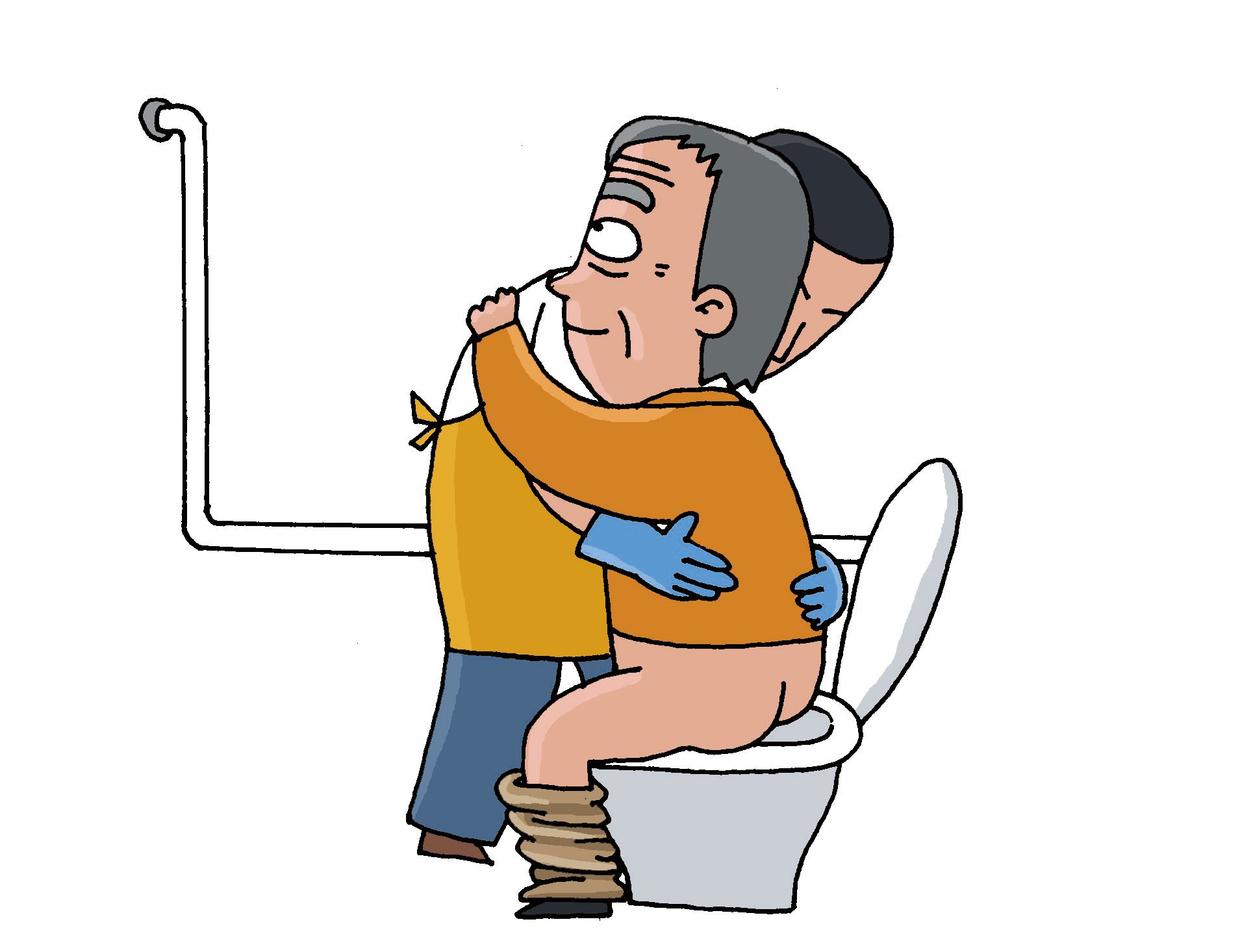 1、讓患者抓住扶手,輔助患者松開(kāi)衣褲。