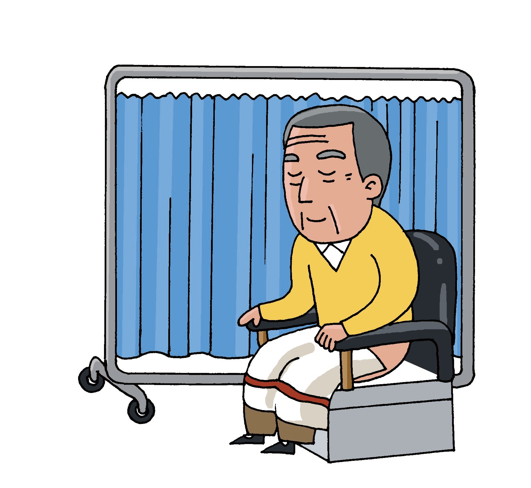 3、讓患者慢慢坐上坐便器,并在下半身蓋上浴巾。