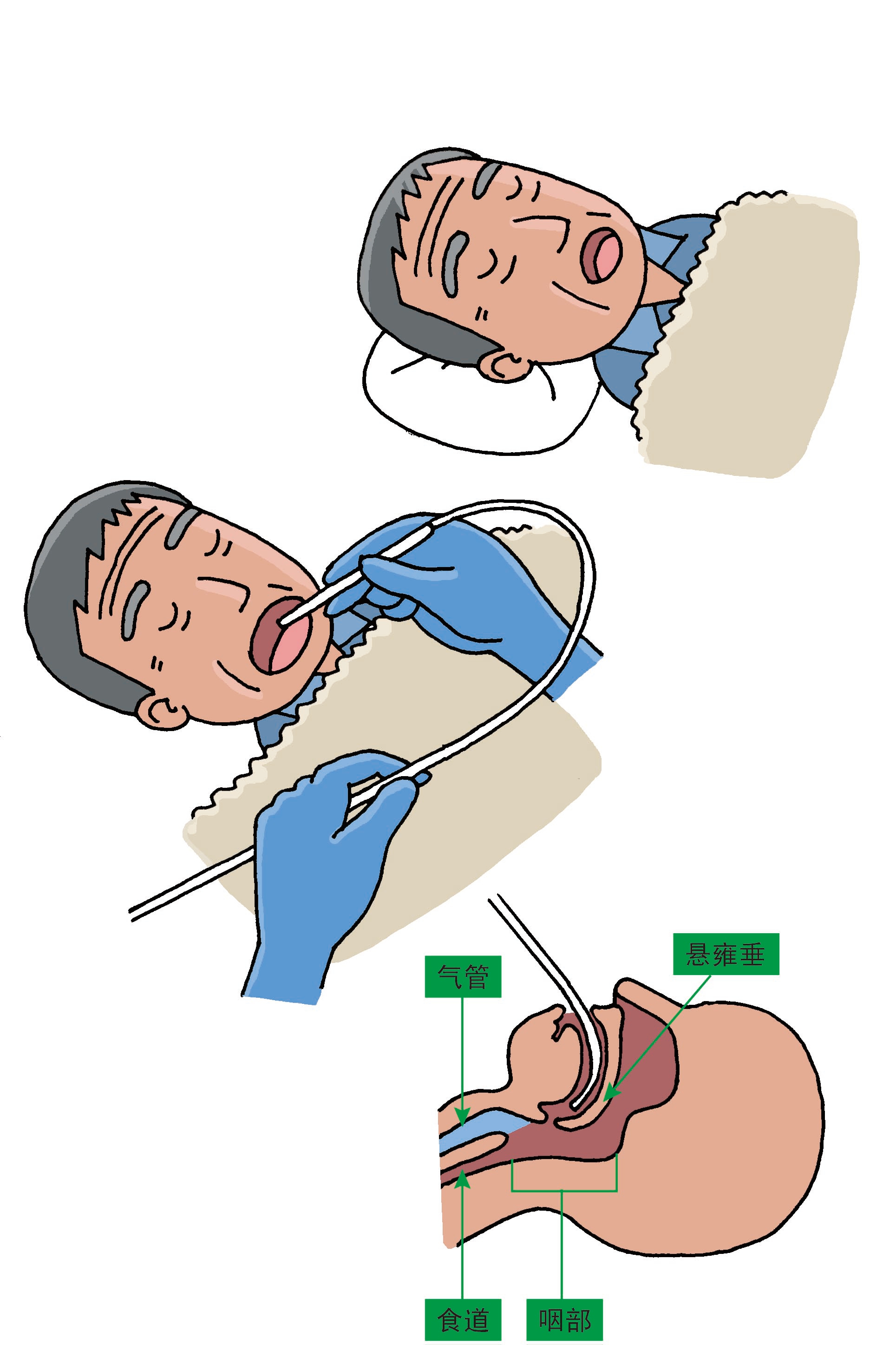 1、雖然要注意不要讓導(dǎo)管碰到舌根和粘膜,但也不要用手指按著導(dǎo)管二十順其自然地插入口腔中。