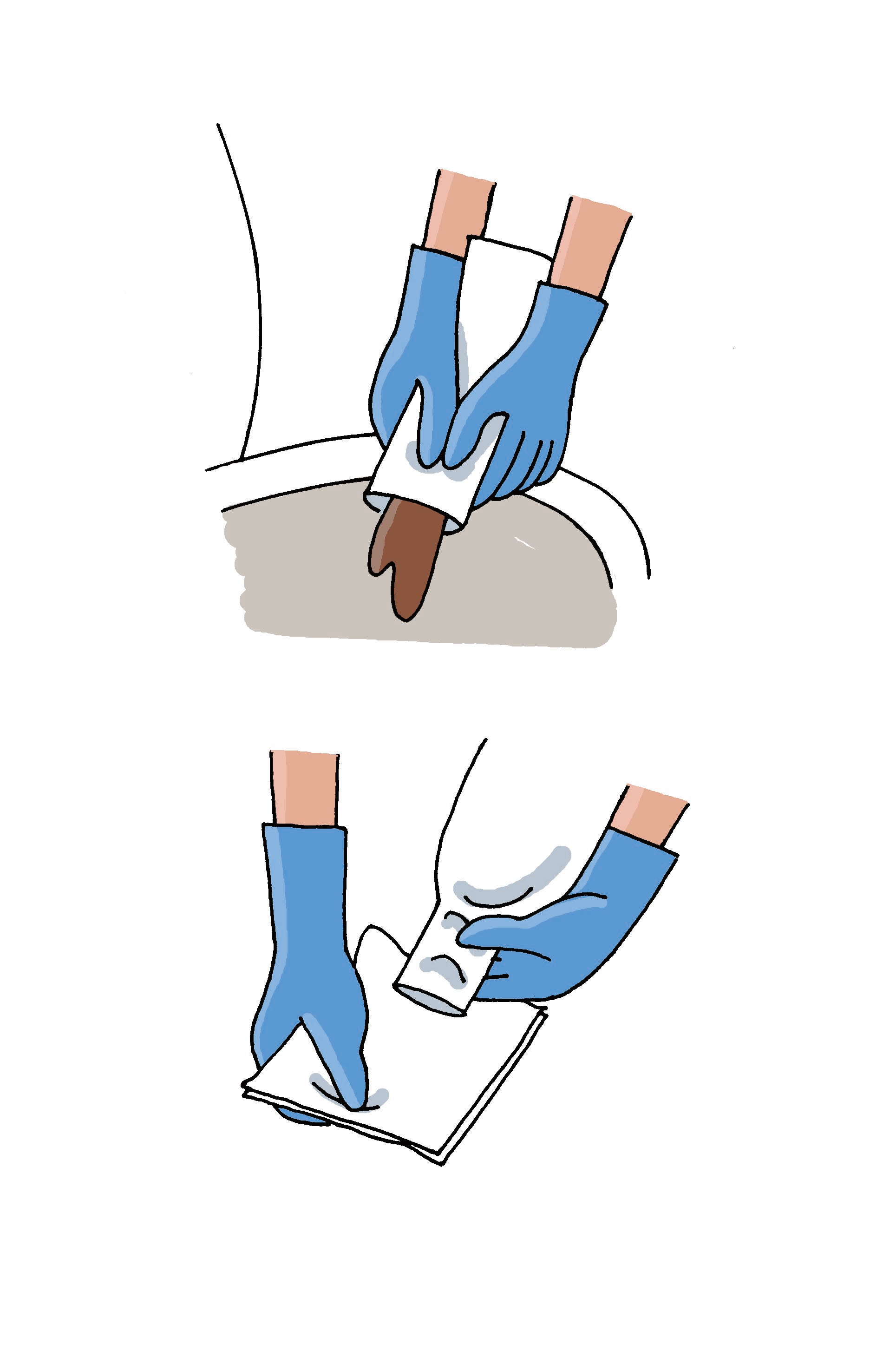 3、將沾在袋子前段的排泄物用棉布等擦干凈。