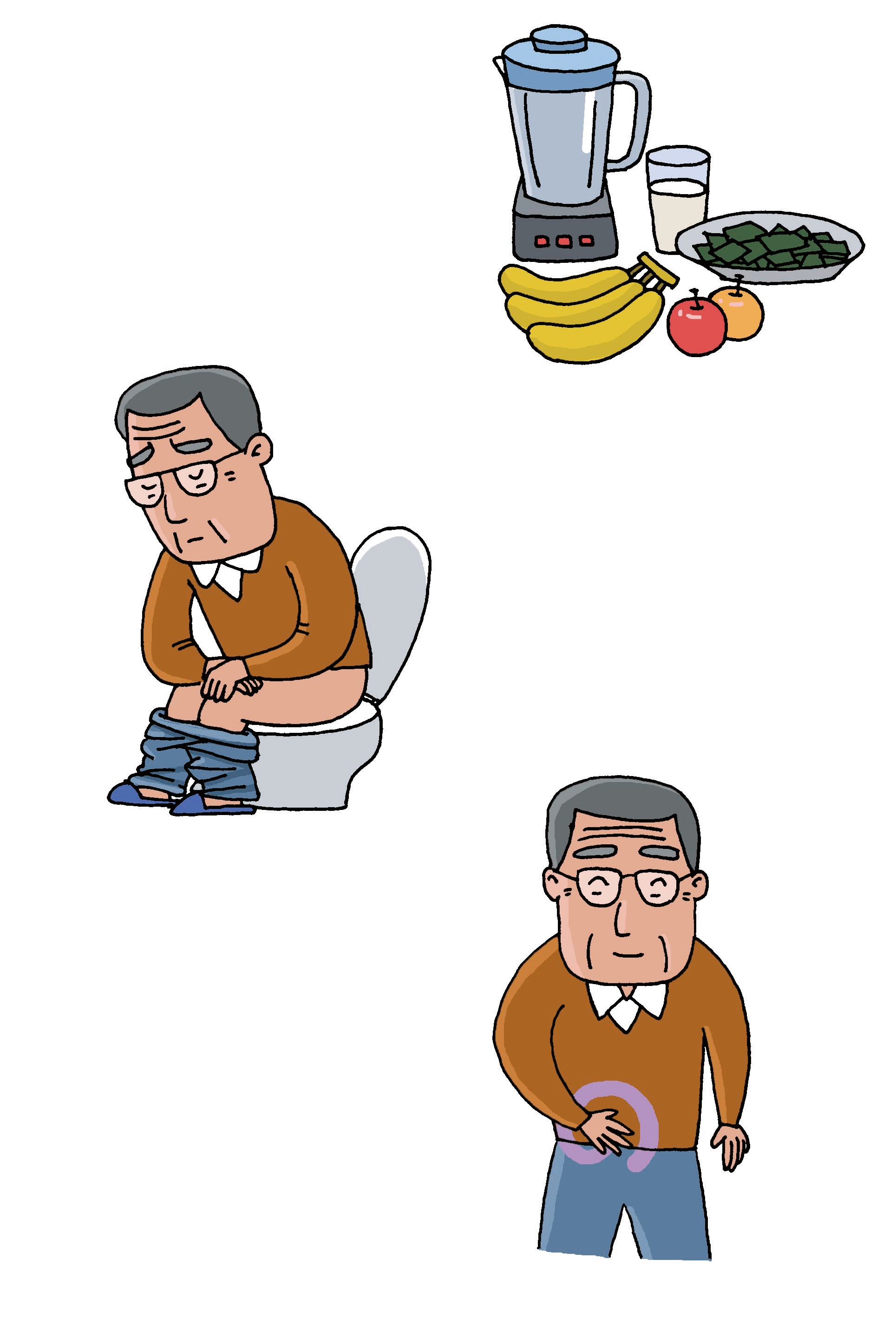 1、大腸機能低下使腸蠕動減弱、與排便相關的肌力降低。