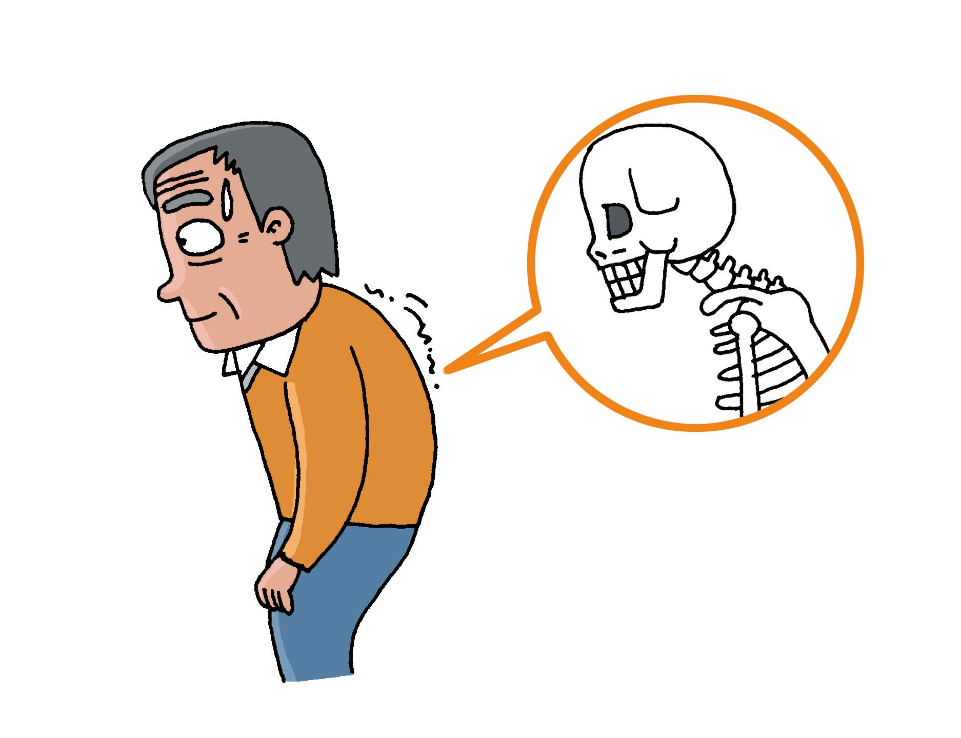由于老化、胸椎、背骨組織損壞,腰變彎曲后,背呈圓形的狀態(tài)。