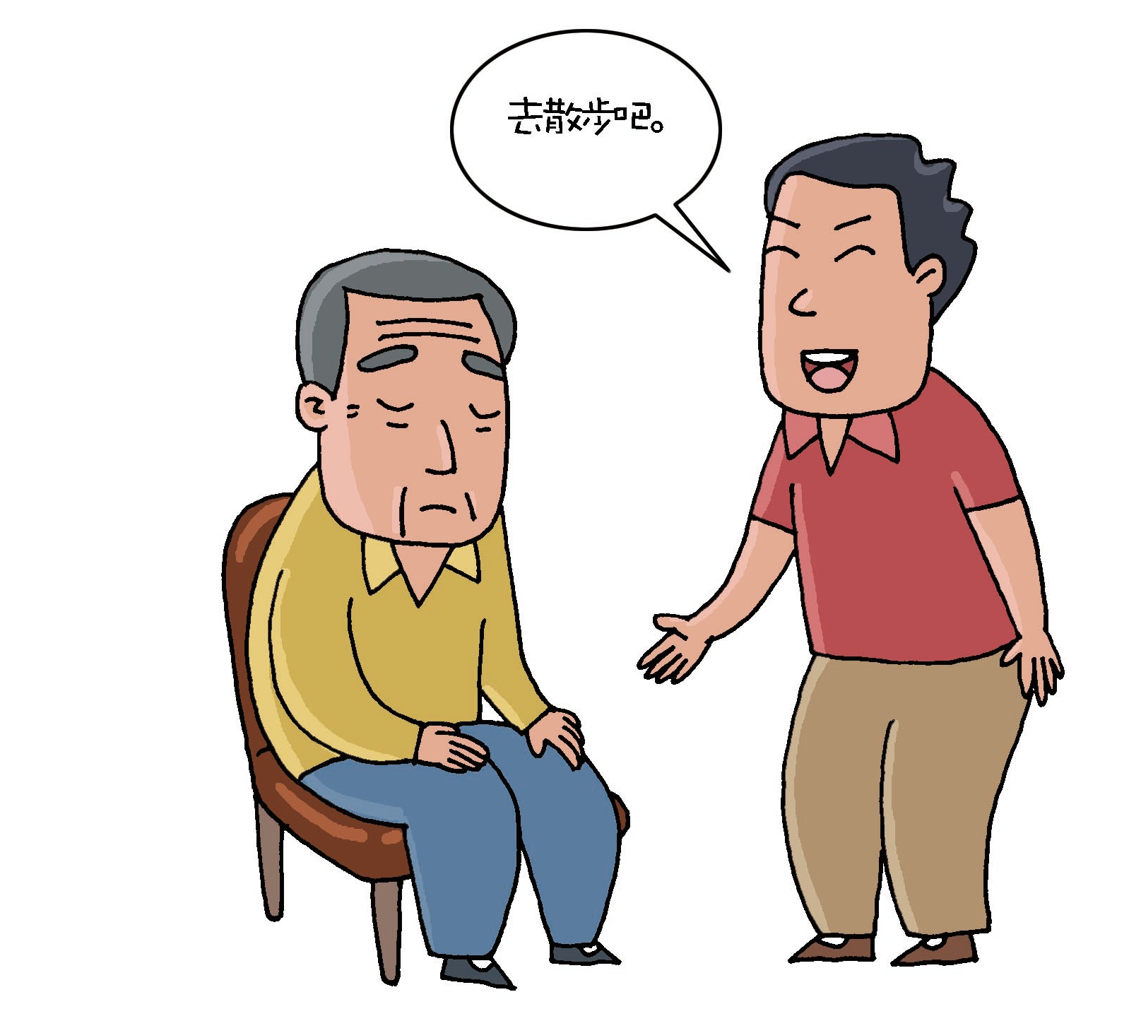 患者對認知功能的衰退有自覺意識,容易引發(fā)抑郁及情緒低落等。因此要讓患者做一些力所能及的事,讓其感覺自己還有用。要盡可能讓患者到室外去活動。