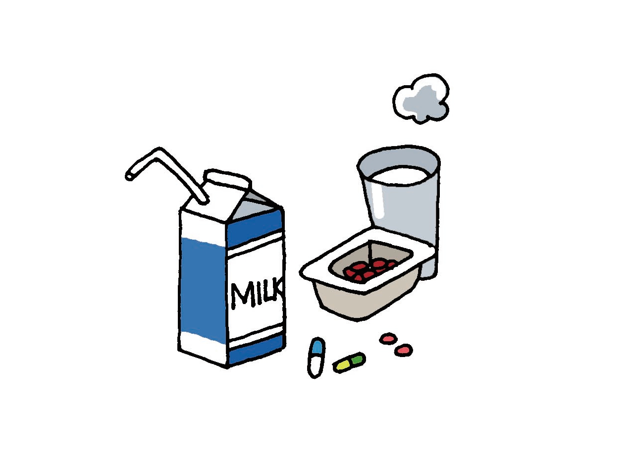 3、抑菌藥、抗生素、骨質(zhì)疏松治療藥+牛奶、乳制品