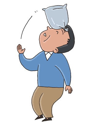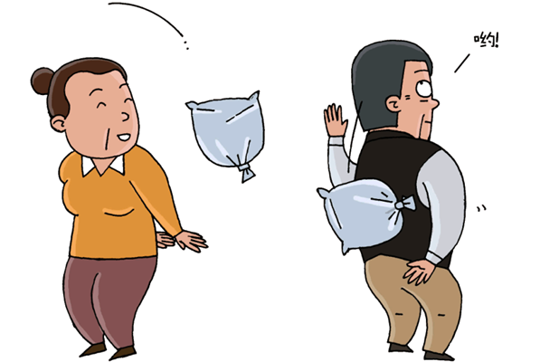②把塑料氣球向身后拋,然后在后腰部接住它。
