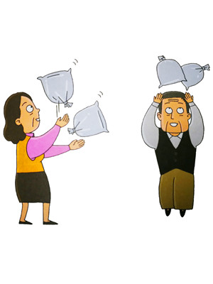 塑料袋里裝入空氣后緊緊結(jié)上袋口(可以用橡皮筋),做成像紙氣球那樣,也可以讓大家一起動手做。