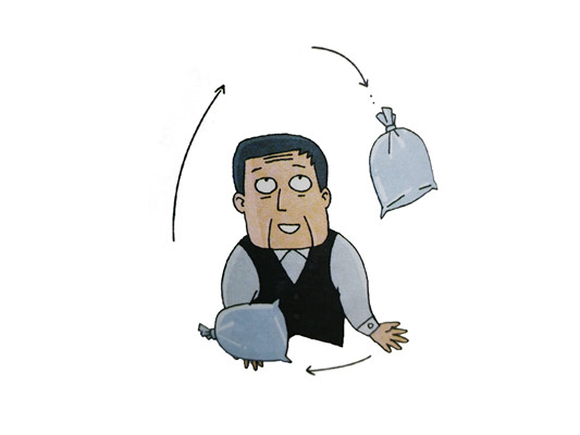起初可以拋高一點(diǎn),給左、右手的交替?zhèn)鹘恿粝驴臻g。