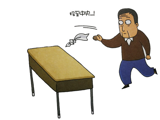 ⑤如能正好將手帕投擲到桌面,那就成功了。