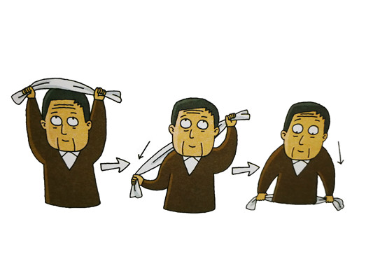 2次、3次、4次這樣增加拍毛巾的次數(shù)。
