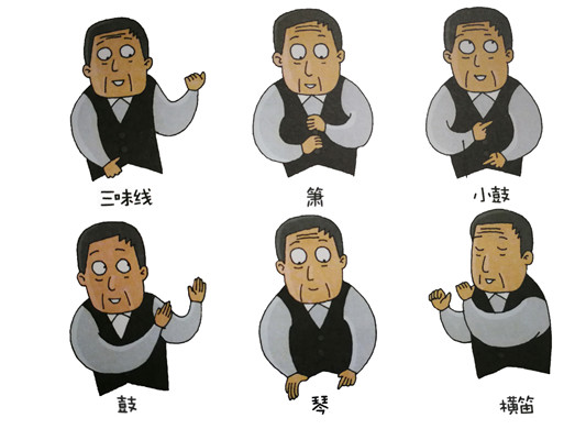 �、谂遥�(lè)器“三味線”的模擬聲)和“嘿咔咻”(豎笛)