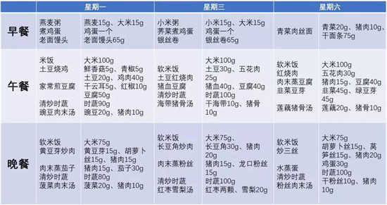 食材種類和重量均不低于《中國(guó)居民膳食平衡寶塔》的要求。以上食譜僅作參考,根據(jù)每個(gè)機(jī)構(gòu)的實(shí)際情況和飲食習(xí)慣,具體菜色有所差異。