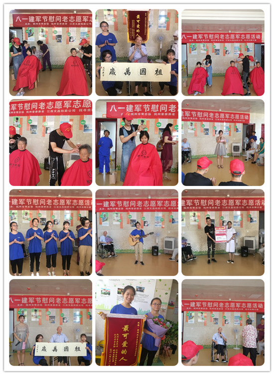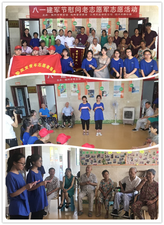 在“八一”建軍節(jié)這個特殊的日子,由市青志協(xié)、撫州普親老年養(yǎng)護中心、找書蟲微公益等單位主辦的“致最可愛的人”志愿活動在臨川區(qū)老年養(yǎng)護中心舉行。8月1日上午,志愿者們相約臨川區(qū)老年養(yǎng)護中心慰問“最可愛的人”——90歲朝鮮戰(zhàn)爭老志愿軍羅居寶。志愿者們?yōu)轲B(yǎng)護中心的老人們帶來了歌舞和精美小禮品,現(xiàn)場一片歡聲笑語。