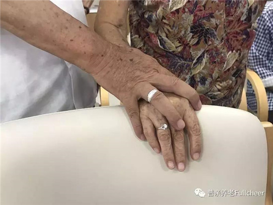 ▲不管什么時候,爺爺奶奶都是緊緊握住彼此的手�?�,我們長汀縣普親老年養(yǎng)護院的工作人員挑選的對戒,是不是又大又閃亮?
