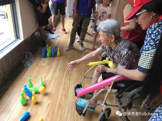 ▲�?谑衅沼H第二老年養(yǎng)護(hù)院來了一批新游戲,爺爺奶奶們都玩得太起勁了。