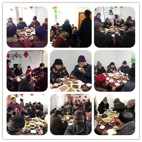 經過大家的共同努力,一道道美味佳肴上桌啦,騰騰的熱氣,誘人的美食,老人臉上洋溢的笑容,共同組成了其樂融融、歡聚一堂的景象,紅紅火火,熱熱鬧鬧,歡度新年。
