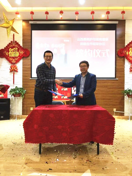2019年1月27日,普親與山西易照護(hù)養(yǎng)老服務(wù)有限公司在太原正式簽署戰(zhàn)略合作協(xié)議,雙方將在產(chǎn)業(yè)鏈層面開展協(xié)同合作,通過對各自獨(dú)立的業(yè)態(tài)進(jìn)行整合,實(shí)現(xiàn)機(jī)構(gòu)、社區(qū)、居家的有效銜接。易照護(hù)董事長甄富春、普親營銷總監(jiān)張啟鋒共同出席并代表雙方簽字。