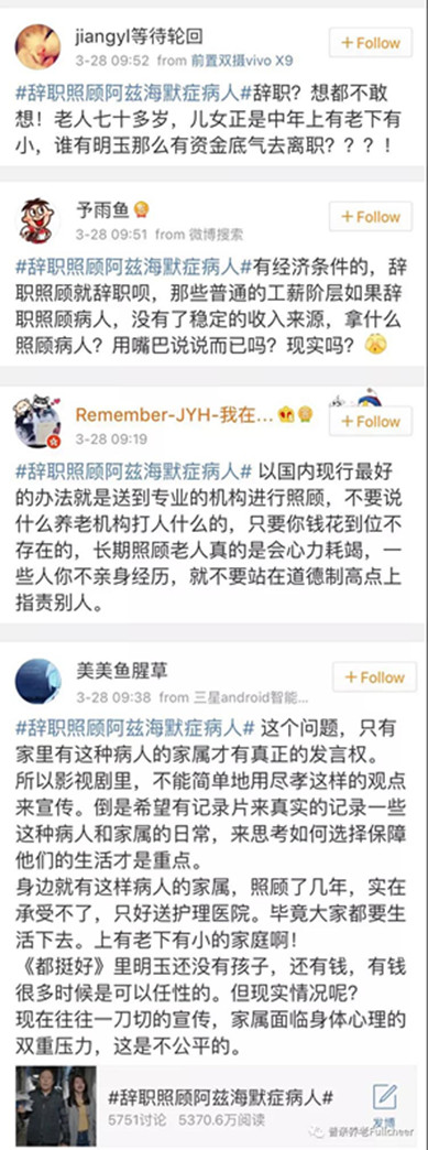 大強(qiáng)走之后的第二天,不出意料,“辭職照顧阿爾茲海默癥病人”的話題登上了微博熱搜。