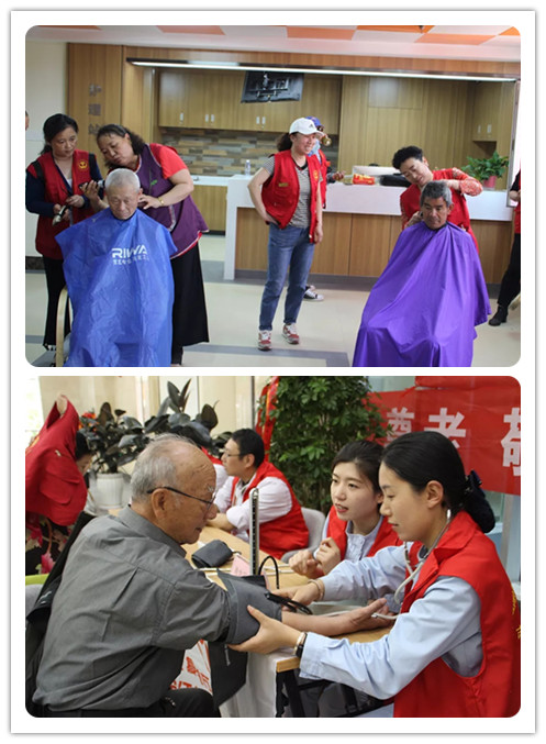 義工團(tuán)為院內(nèi)老人開展義診、義剪等關(guān)愛活動(dòng)。