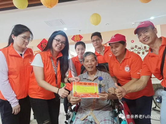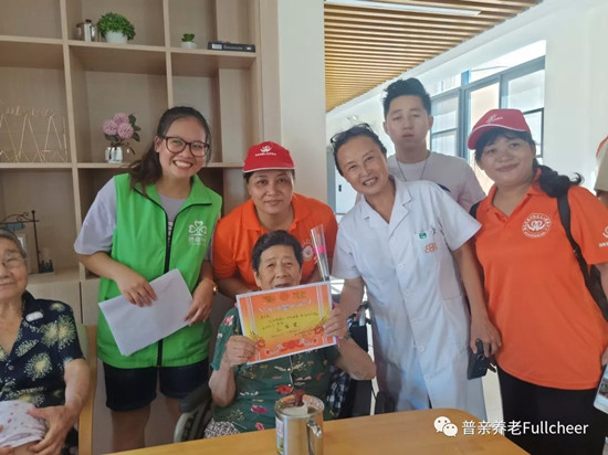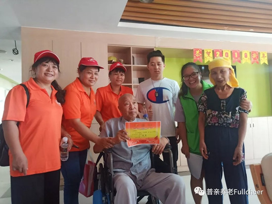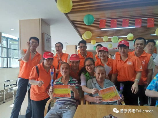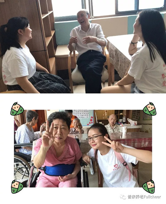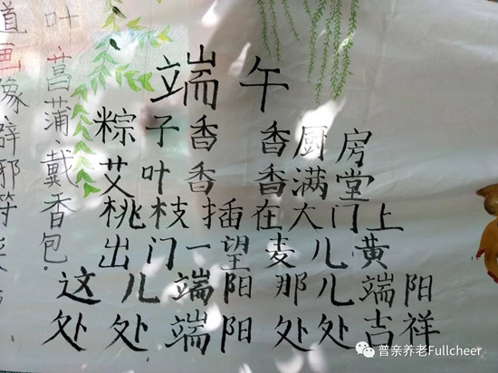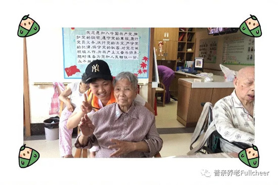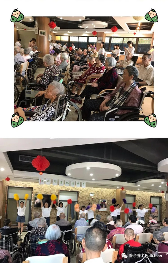 普親老年養(yǎng)護(hù)院同樣開展了一場(chǎng)“快樂(lè)頑童,縱情端午”的主題活動(dòng),活動(dòng)邀請(qǐng)到了湖南女子學(xué)院的志愿者們,他們?yōu)闋敔斈棠處?lái)了精彩的詩(shī)詞朗誦、啦啦操、手語(yǔ)表演、紅歌串燒等,同時(shí)還組織了趣味的端午知識(shí)問(wèn)答,易爺爺,譚奶奶,袁叔叔就通過(guò)知識(shí)問(wèn)答贏得了端午小禮品,看到老寶貝們甜甜的笑容,“溫暖的是我們這些小寶貝的心�!�