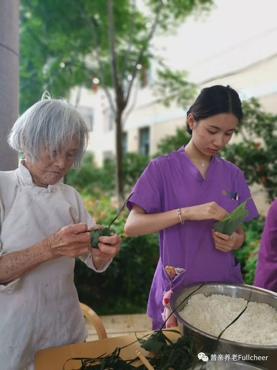 端午節(jié),普親樹也面向戴家河社區(qū)日間照料中心組織開展了“粽葉飄香,粽情端午”主題活動(dòng),養(yǎng)護(hù)中心工作人員與社區(qū)居民聚在一起包粽子,享受手工的樂(lè)趣,感受節(jié)日的氛圍。