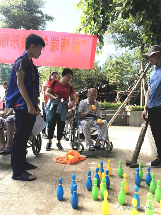 端午節(jié),�?谑衅沼H第二老年養(yǎng)護(hù)院舉辦的第二屆老年夏季運(yùn)動(dòng)會(huì)開幕了,去年沒(méi)趕上第一屆運(yùn)動(dòng)會(huì)的爺爺奶奶們?cè)缫呀?jīng)躍躍欲試了,海南熱辣的溫度絲毫沒(méi)影響大家的熱情。在志愿者們的幫助下,爺爺奶奶們參加了釣魚、扔沙包、套圈圈、扔飛鏢、撈球、保齡球等項(xiàng)目,每個(gè)項(xiàng)目對(duì)應(yīng)相應(yīng)積分,最終成績(jī)會(huì)根據(jù)積分評(píng)出一二三等獎(jiǎng)。