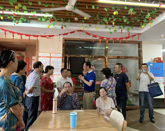 6月19日,湘潭市民政局副局長(zhǎng)劉家梁、市老齡辦主任洪英及雨湖區(qū)民政局副局長(zhǎng)湯望麗攜湘潭市人大常委會(huì)辦公室機(jī)關(guān)離退休干部黨總支一行70余人蒞臨湘潭市普親高嶺老年養(yǎng)護(hù)中心調(diào)研考察�?疾靾F(tuán)細(xì)致參觀了養(yǎng)護(hù)中心內(nèi)各功能區(qū),了解吃、穿、住、行、樂(lè)的全方位服務(wù)體系,對(duì)養(yǎng)護(hù)中心干凈整潔的環(huán)境、科學(xué)合理的適老化設(shè)計(jì)、專業(yè)服務(wù)的態(tài)度表示了認(rèn)可。