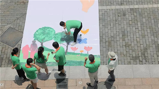 一個人創(chuàng)作一幅畫只是時間問題,一群人創(chuàng)作一幅畫則不只是時間問題,分組、分塊、設(shè)計、調(diào)制顏料、繪制……再拼湊出一副完整的畫面,最終小伙伴們用速度和成果證明了自己。