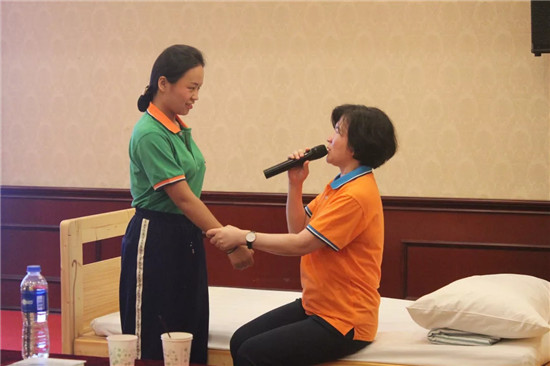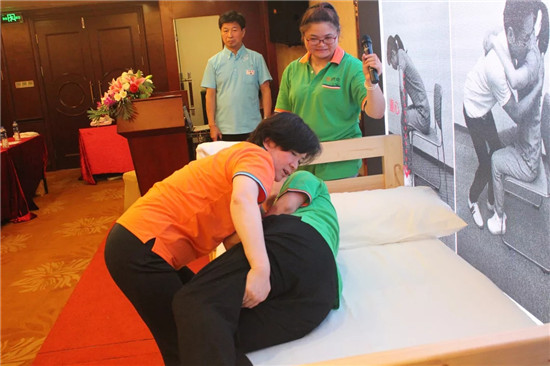 林龍英老師以《減輕介護(hù)人員身體負(fù)擔(dān)的移動(dòng)移乘技巧》為題對(duì)學(xué)員們進(jìn)行了專業(yè)移動(dòng)移乘技巧的培訓(xùn),通過具體的情景設(shè)置,為學(xué)員演示正確的操作方法及背后所蘊(yùn)含的專業(yè)知識(shí),讓學(xué)員們了解容易發(fā)生的誤區(qū)及可能存在的傷害。
