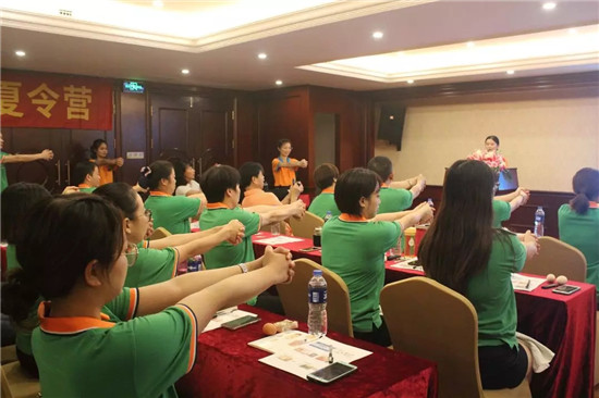 趙老師帶領(lǐng)學(xué)員們做減壓操。