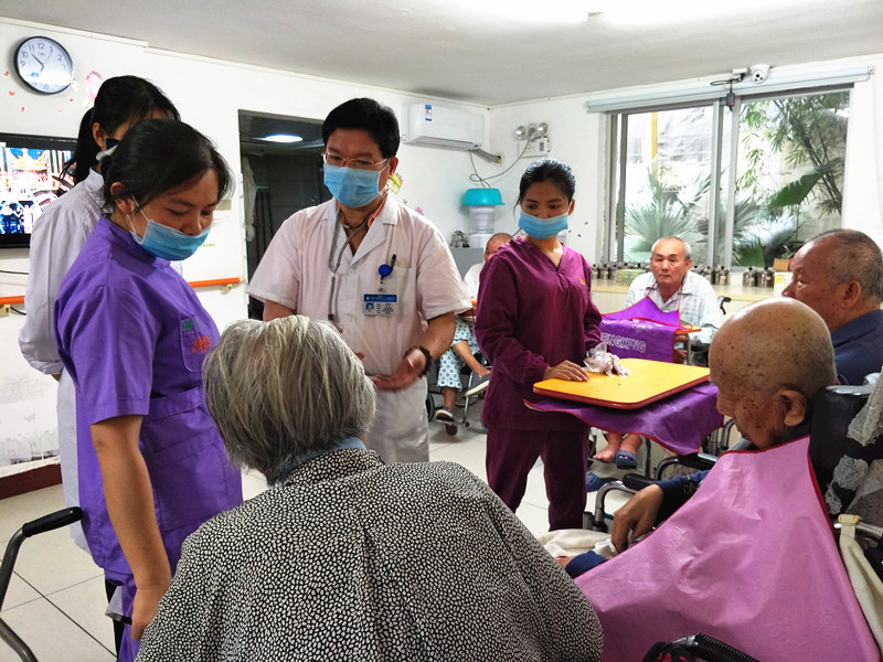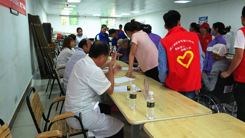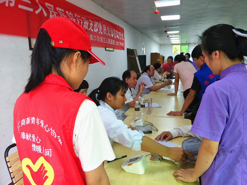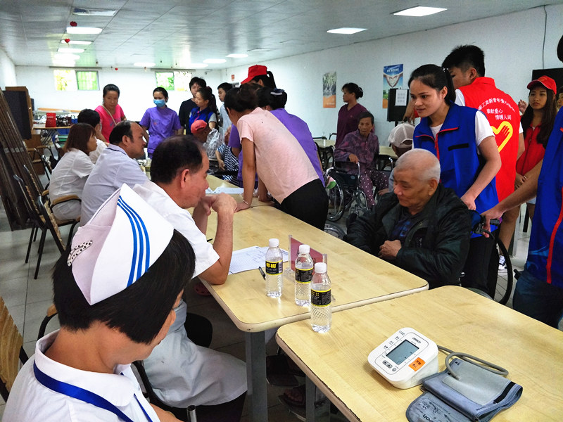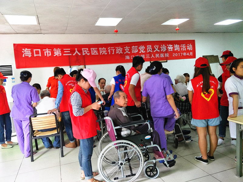 2017年4月22日上午9點(diǎn)-11點(diǎn),中共海口市第三人民醫(yī)院行政支部黨員在瓊山機(jī)構(gòu)開(kāi)展義診,本次活動(dòng)由第三人民醫(yī)院行政支部書記胡金牛負(fù)責(zé),義診主要包括內(nèi)科、外科、中醫(yī)等項(xiàng)目。其中外科由鄧高鵬(院長(zhǎng)、骨科副主任醫(yī)師)、中醫(yī)由毛新龍(副院長(zhǎng)、主任醫(yī)師)負(fù)責(zé)、內(nèi)科由胡金牛(院長(zhǎng)助理、內(nèi)科副主任)醫(yī)師負(fù)責(zé)、護(hù)理及測(cè)血壓等工作由施秒萍負(fù)責(zé)。衛(wèi)生大掃除由行政支部副書記負(fù)責(zé),成員由參加義診外的所有行政支部黨員組成。這次是普親與�?谑械谌嗣襻t(yī)院簽署醫(yī)養(yǎng)合作協(xié)議后開(kāi)展的首場(chǎng)活動(dòng),獲得醫(yī)院方的高度關(guān)注,派出科室科長(zhǎng)和多名專家坐診。老人們踴躍參與,向主任醫(yī)師講述自己的病情,并對(duì)癥開(kāi)方。專家主任醫(yī)師還親到重度臥床病人旁,詳細(xì)查看老人病歷和病癥,并給出治療和護(hù)理建議。家屬對(duì)普親能積極拓展合作渠道,請(qǐng)來(lái)專業(yè)醫(yī)師診療老人給予高度評(píng)價(jià)!