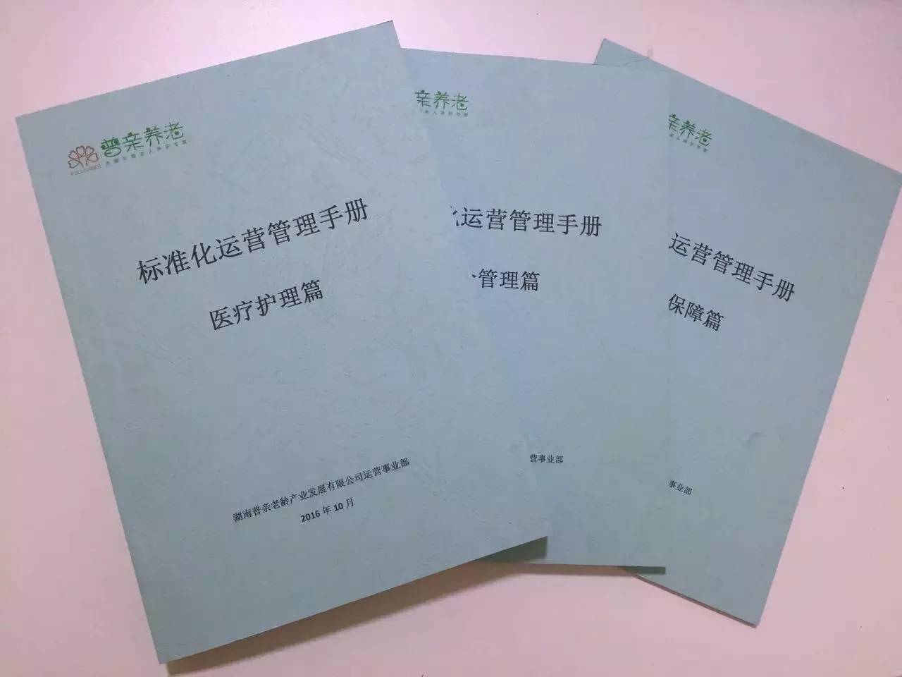 關(guān)于標(biāo)準(zhǔn)化運(yùn)營(yíng)管理,普親標(biāo)準(zhǔn)化部目前已經(jīng)下發(fā)了337個(gè)標(biāo)準(zhǔn)化文件,這些文件采用國(guó)際通用編碼分類(lèi),包括P&P制度程序、SOP操作流程、WS工作表格、AG協(xié)議合同等,涵蓋綜合管理方面的機(jī)構(gòu)管理、行政管理、財(cái)務(wù)管理、信息化管理等方面,醫(yī)療護(hù)理的評(píng)估、護(hù)理、康復(fù)等方面以及后勤保障的餐飲、保潔、維修等方面。