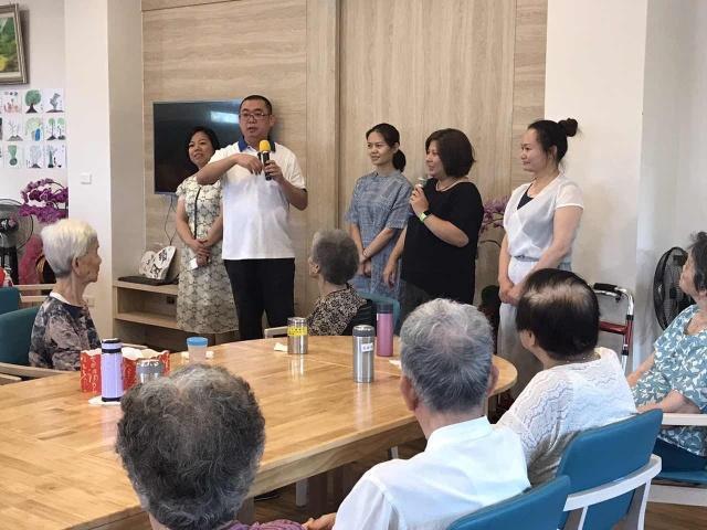 我們一進(jìn)去就被里面的場(chǎng)景所吸引,老人們圍成兩桌在做餅干,每個(gè)老人都非常投入;院長(zhǎng)邀請(qǐng)了一位曾經(jīng)擔(dān)任過校長(zhǎng)的老人跟我們講話,老人說話稍微有些不清晰,但思維還是很有條理;之后由一位年長(zhǎng)的社工leader帶領(lǐng)老人們唱歌、做舞蹈操;最后是老人們一同用餐。為什么我要把這些環(huán)節(jié)都說一遍,因?yàn)槊恳粋(gè)環(huán)節(jié)都蘊(yùn)含著對(duì)老人的關(guān)愛和尊重!