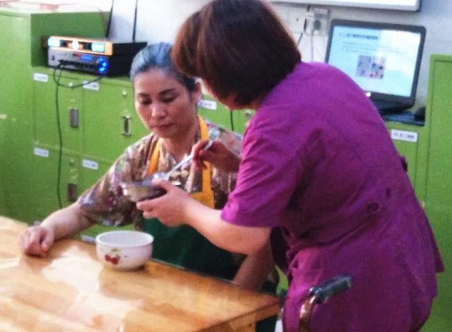 ▲情景模擬阿爾茨海默癥長者在養(yǎng)老院的日常,從日常的生活起居到相關(guān)的失智康復(fù),全面地向現(xiàn)場家屬展示了癡呆老人在養(yǎng)老院的日常,以及護(hù)理員與老人之間的有愛互動。