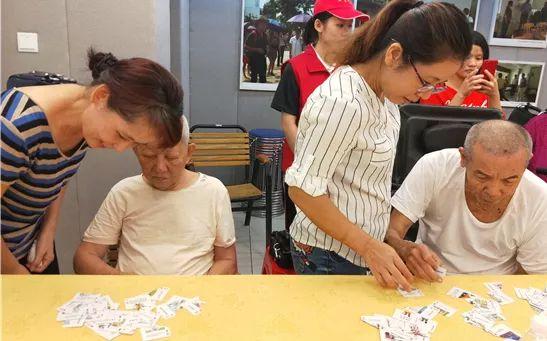 ▲ 活動中最受歡迎的就是紙牌拼接游戲,至親家屬帶著長輩做游戲,恍惚一下回到小時候父母與自己做游戲的時光,其樂融融,也感慨滿滿;時光流逝,陪伴才是我們能給父母的好的愛。