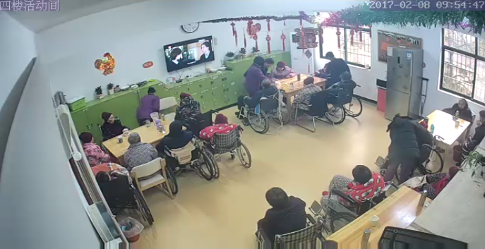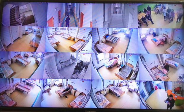 采用�?低暋O(jiān)控行業(yè)第一品牌。在所有房間及公共區(qū)域均有攝像頭,最高清晰度可達(dá)1080P,在護(hù)士站設(shè)置大屏幕,可實(shí)時(shí)查看所有房間內(nèi)老人的動(dòng)態(tài)。同時(shí)所有機(jī)構(gòu)監(jiān)控均通過(guò)聯(lián)網(wǎng),管理人員在電腦或手機(jī)上即可看到全國(guó)任意一個(gè)點(diǎn)位的實(shí)時(shí)畫(huà)面及歷史錄像。