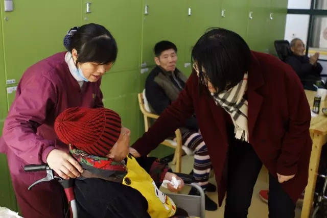 (楊薇副廳長來機構(gòu)里看望老人們。)
