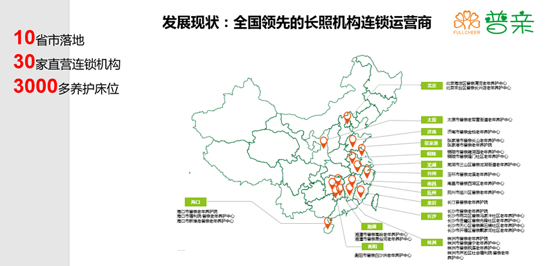 ▲普親養(yǎng)老長照機(jī)構(gòu)落地的十個省份