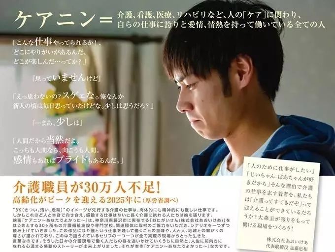 據(jù)日本厚生勞動(dòng)省統(tǒng)計(jì),2012年為止,每七位長(zhǎng)者中就有一位認(rèn)知癥長(zhǎng)者,到2025年,每五位長(zhǎng)者中就有一位認(rèn)知癥長(zhǎng)者。與此同時(shí),2025年介護(hù)職員將有30萬人的缺口。電影里敬子奶奶的孫女最后選擇去讀福祉學(xué)校,我們也希望能有更多的年輕人加入到中國(guó)的介護(hù)行業(yè)中來,一起守護(hù)長(zhǎng)者們。
