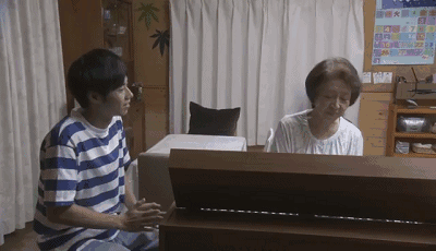 取得了家人的同意后,圭完成了與敬子奶奶的約定,在夏日祭實(shí)現(xiàn)了奶奶和小朋友們合唱的愿望。剛開始的時(shí)候奶奶不知所措,但畢竟是身體記住的記憶,很快與大家開始了合唱,留下了讓一家人都珍藏的笑容。