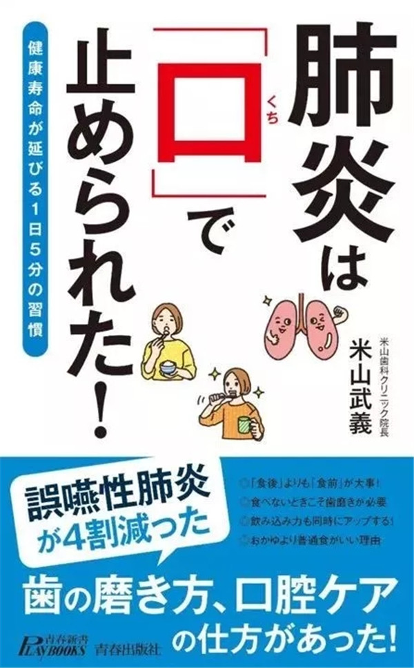 米山醫(yī)生的著書和倡導(dǎo)得到了日本廣大牙醫(yī)們的贊同和響應(yīng),無論您去日本的任何一家牙科診所,都會或多或少地聽到擔(dān)當(dāng)?shù)尼t(yī)生或者齒科衛(wèi)生士講述預(yù)防誤咽性肺炎的重要性和方法,這一課題已經(jīng)被列入日本厚生勞動省“延長健康壽命”的重要一環(huán)。