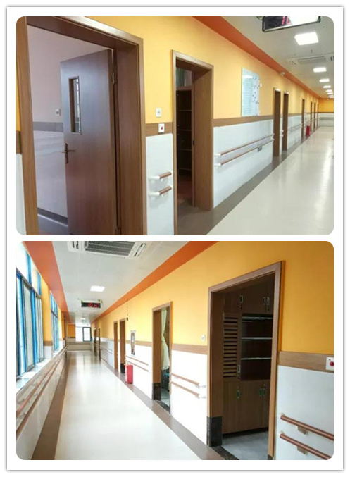 考慮到入住老人的生理特征,室內(nèi)設(shè)置了大面積的無障礙通道區(qū)域,避免磕碰的同時也為長輩們創(chuàng)造了空間進行百步走、早操鍛煉,通道兩面的墻體下部均設(shè)置有人性化圓形扶手,上部扶手方便能夠行走或站立的老人,下方扶手則方便坐輪椅的老人,貼心舒適。