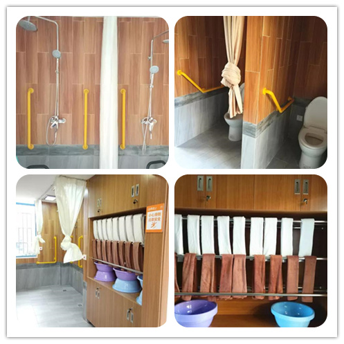 干濕分區(qū)的衛(wèi)生間以及盥洗室,配備了具備清水沖洗、自動烘干、墊圈加溫、抗菌除臭等功能的智能馬桶,同時安裝人性化扶手,不僅給老人心理上的安全感,也讓長者在站立時省很多力。